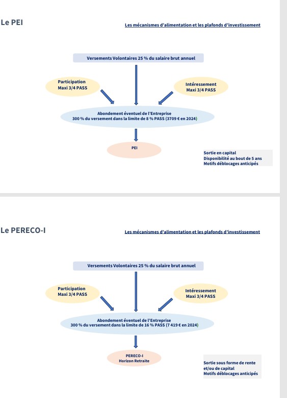 Ce dispositif peut être mis en place à partir d’un effectif d’un salarié dans l’entreprise et il comporte 2 volets le PEI ( épargne à 5 ans) et le PERECOI ( objectif retraite) .